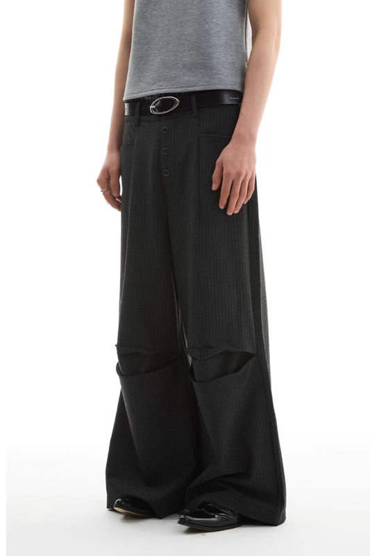 STRIPED DEFORMED SLACKS