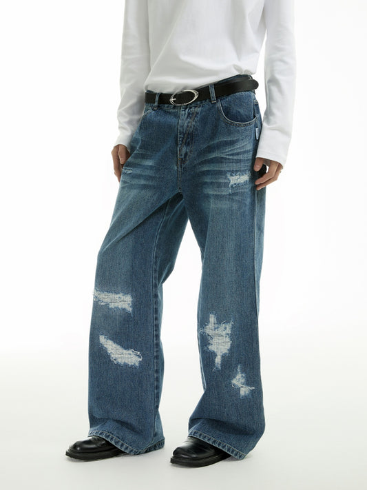 IRREGULAR PATCH CAT WHISKER JEANS