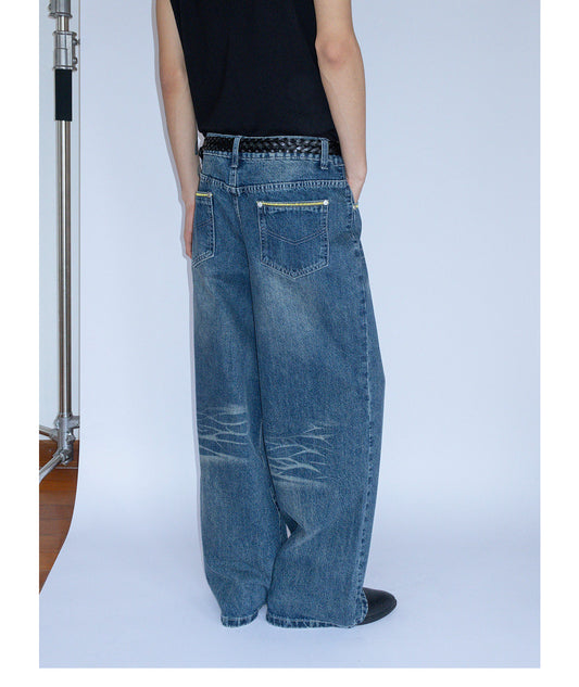 WASHED WIDE LEG SILHOUETTE JEANS