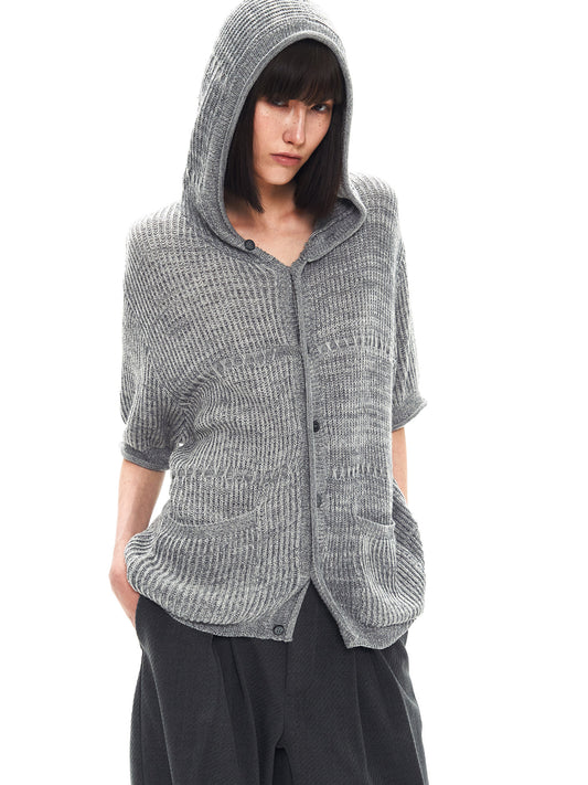 ASH GREY JACQUARD HOODED CARDIGAN