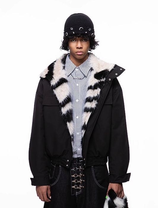 FUR COLLAR LINED ZIP JACKET