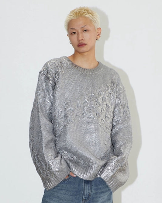 METALLIC COATED IRREGULAR PATTERN SWEATER