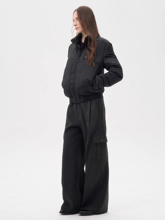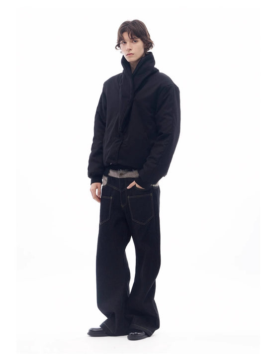 RUGGED SCARF COLLAR CARBON BLACK PUFFER