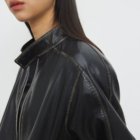 CURVED SHOULDER PADDED LEATHER JACKET