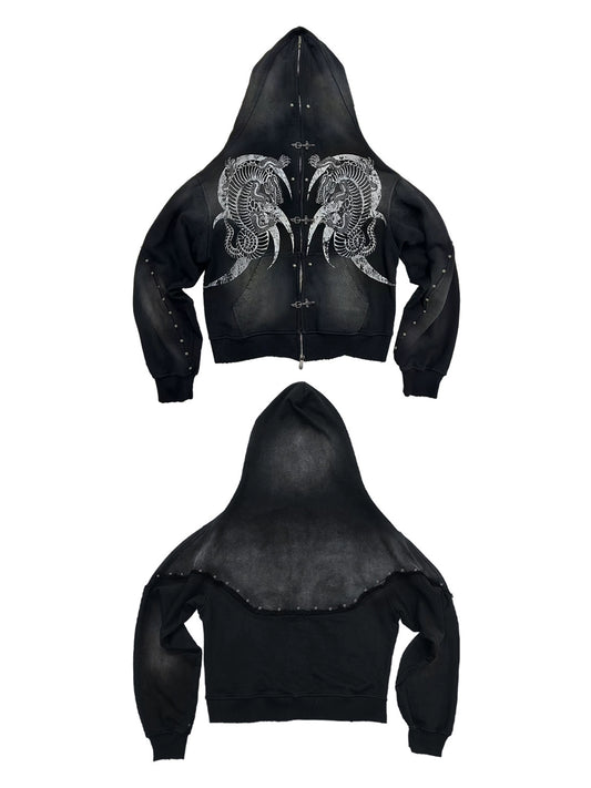 BOXY CUT FADED HOODIE WITH METAL FASTENERS