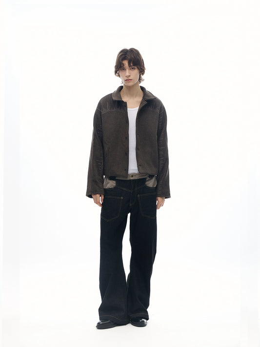 SCARF PATCHWORK CURVED COW DENIM JEANS