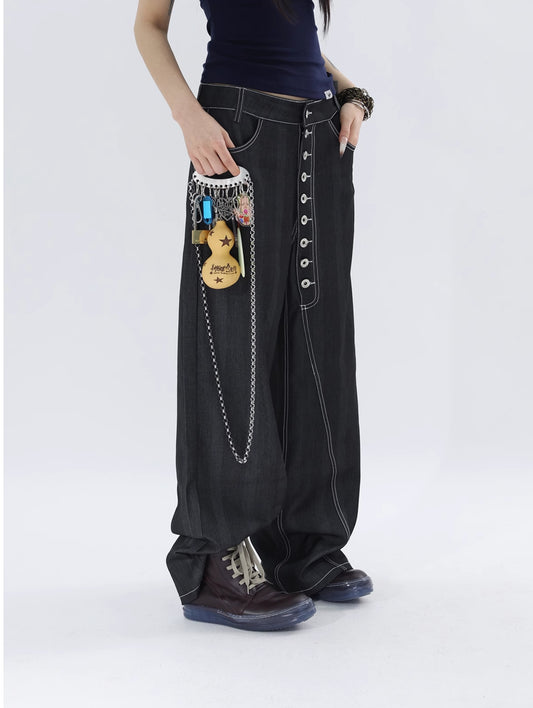TOPSTITCH MULTI-BUTTON DENIM PANTS