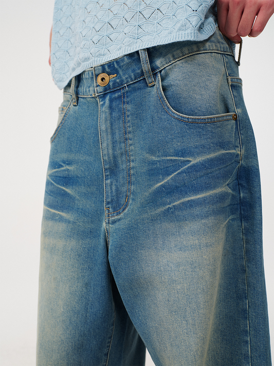 RIPPLE WASHED WIDE LEG JEANS