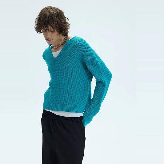 LOOSE TRICOLOR V-NECK SWEATER