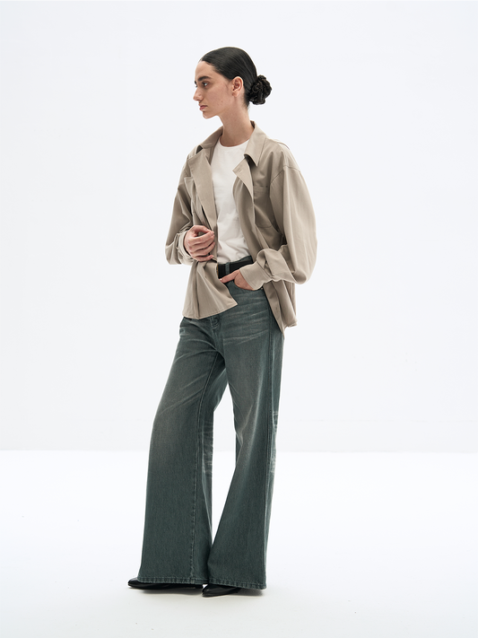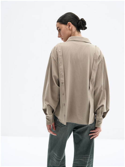 GREY JEWEL BUTTON TEXTURED SHIRT