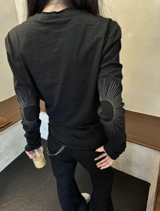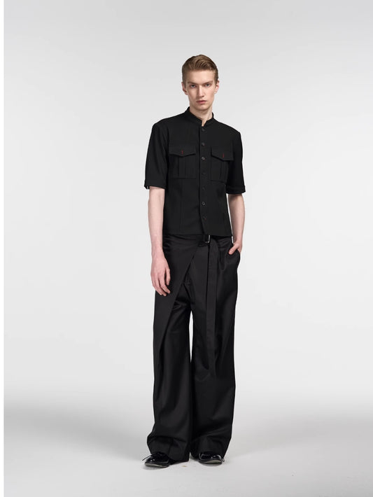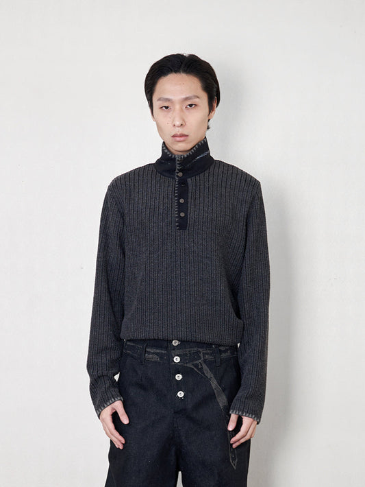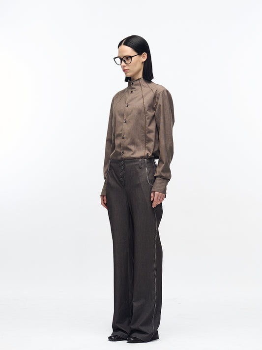 PATCHWORK SPLIT HEM HIGH-NECK SHIRT