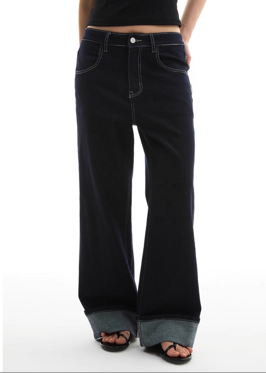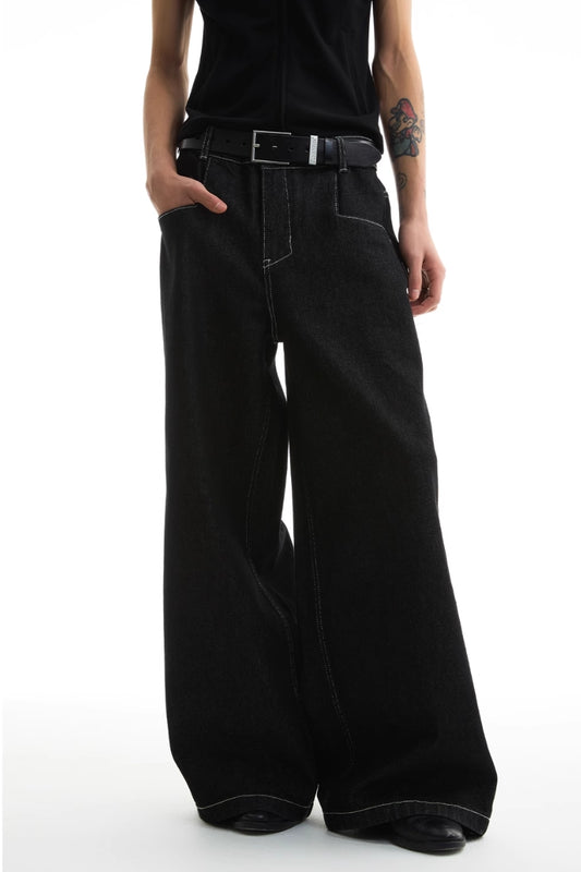 TOPSTITCHED LOOSE STRAIGHT WIDE JEANS