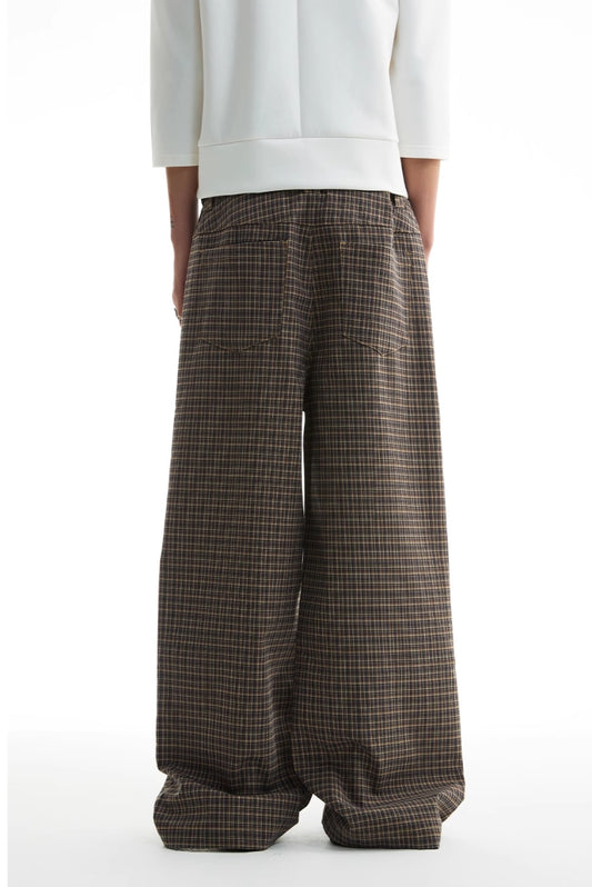 KHAKI PLAID STRAIGHT SUIT TROUSERS