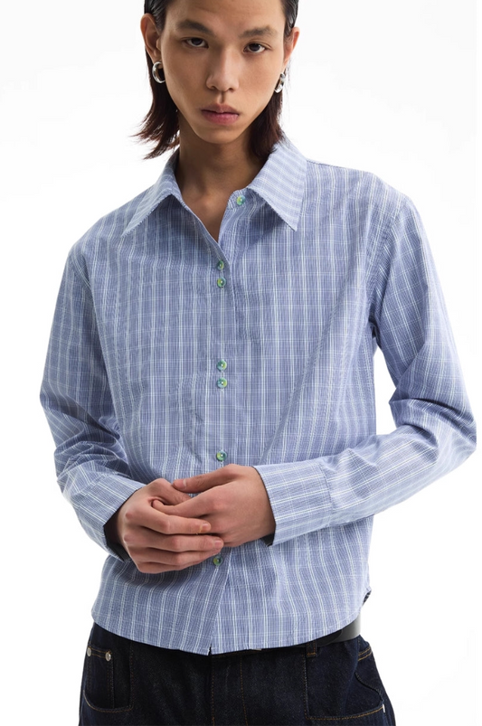 LIGHT BLUE PLAID SLIM FIT SHIRT