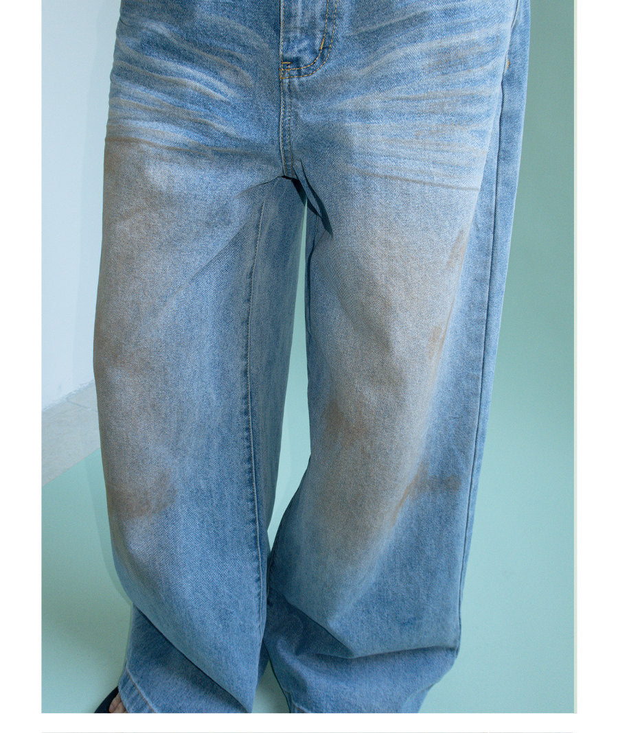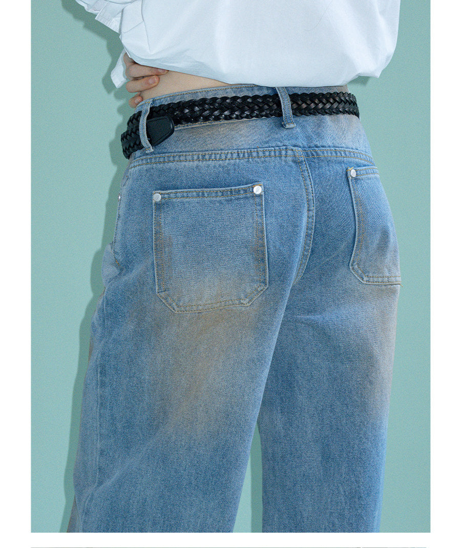 MID RISE CAT WHISKER FADED STRAIGHT LEG JEANS